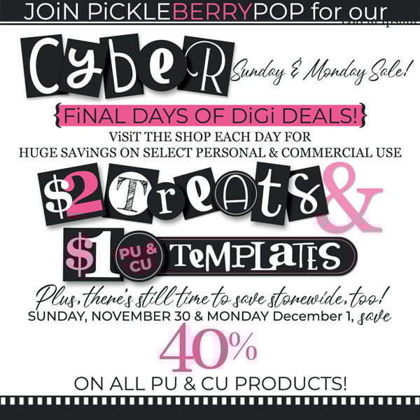 available ONLY at PBP! Head over to PiCKLEBERRYPOP and grab my six Cyber Sunday Deals